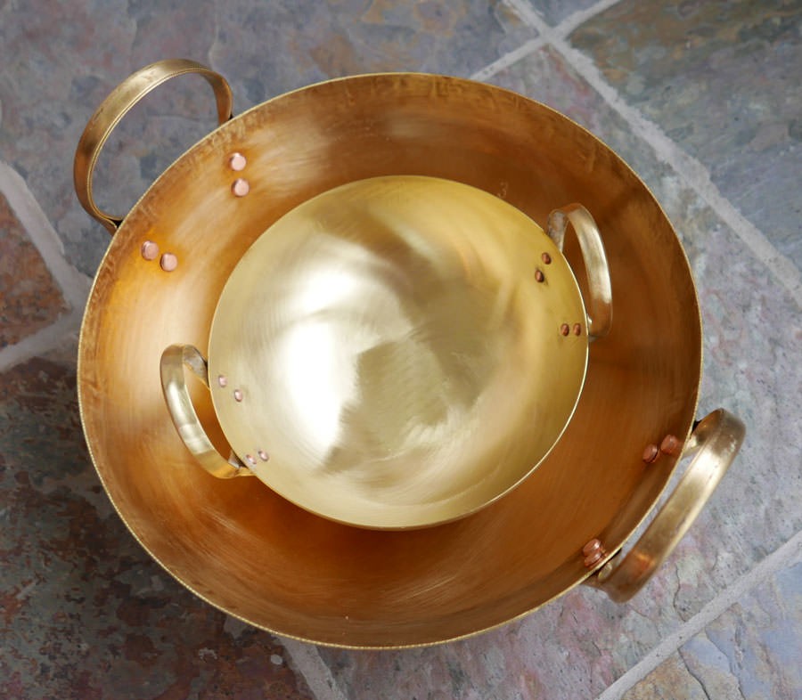 The solid brass wok is commonly used in Thai cooking for preparation of various desserts. Brass has certain advantages when cooking sweets. Brass heats evenly, so syrups and candies can be prepared without scorching.