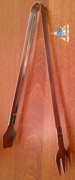 At one end is a sharp three-pronged fork, good for jabbing and grabbing meats and the barbecue. The other end has a spoon-like shovel. The pieces are firmly connected together, and this is made to last for years.