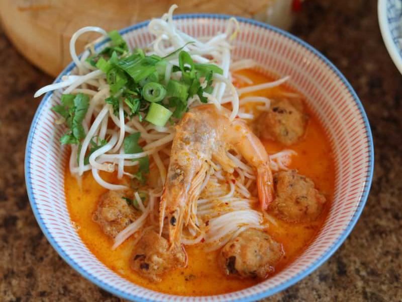 Made with our Laksa Paste from Por Kwan Thailand and our delicious home-made shrimp balls. Served over rice noodles, this is a complete meal full of flavor.