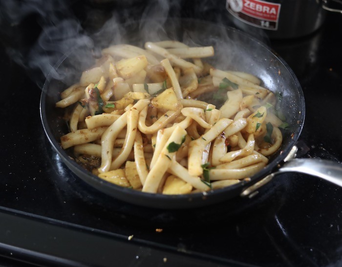 Squid Kee Mao is a popular dish served throughout Thailand and it should be served with a high level of chile heat, as we make it here. Use plenty of fresh Thai chile peppers, and also fresh pineapple.
