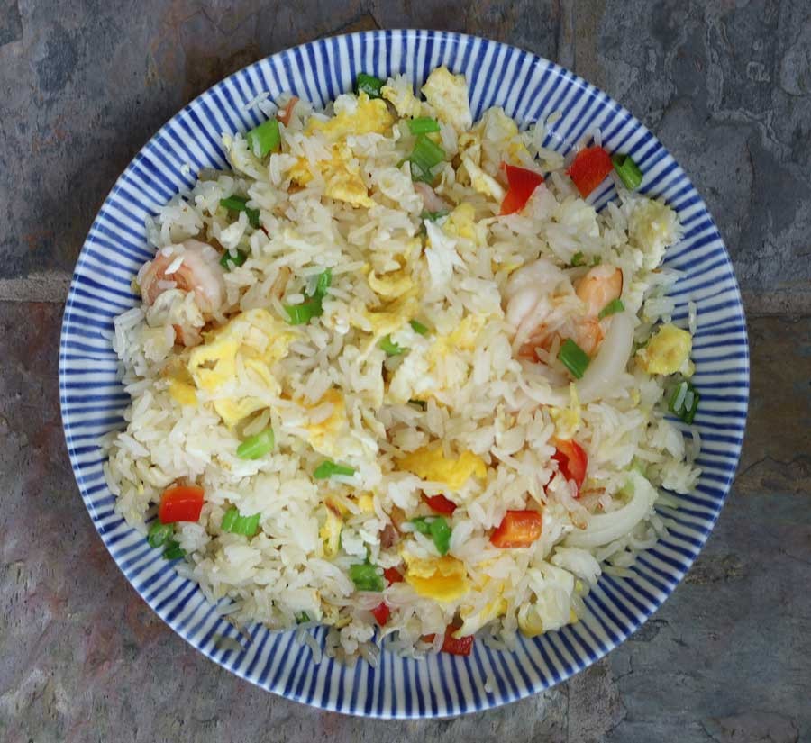 To use this product, start by adding 2 tablespoons of vegetable oil to a wok, heat and add 1/2 lb of shrimp, pork or chicken (we used shrimp). Add one egg, and scramble. Add about 1 plate of steamed jasmine rice, lower the heat and add the fried rice mix. Stir and add other ingredients of your choice, such as onion, and you've created a wonderful Thai-style khao pad (fried rice). We added some drops of Maggi Seasoning over the top at the end, highly recommended.